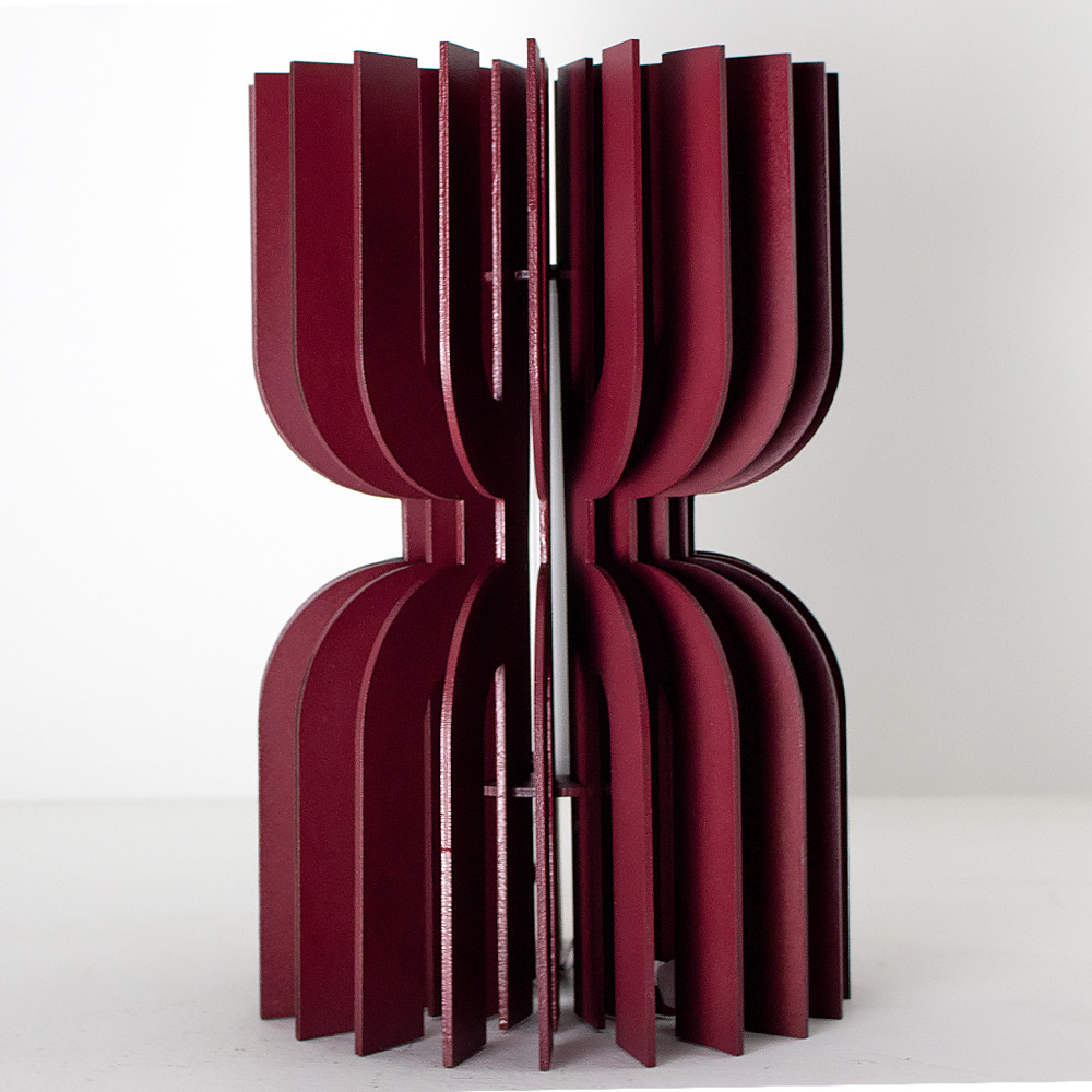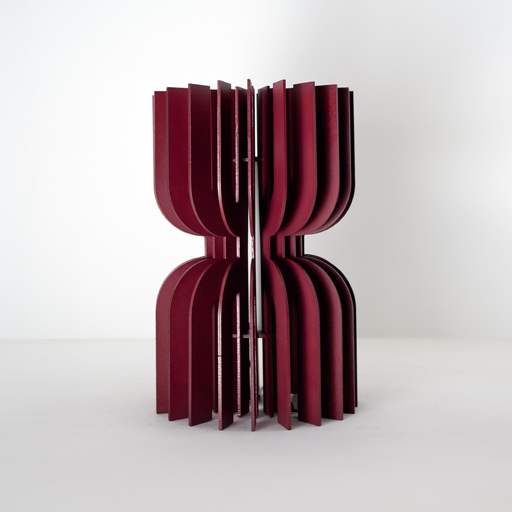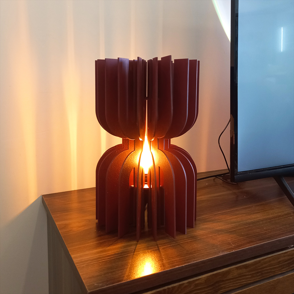 Kylix’i sıradan bir ahşap masa lambasından ayıran en önemli özellik, üretim sürecindeki titizliktir. Her bir katman, özenle kesilmiş 3mm MDF ahşaptan oluşur ve birbirine hassas bir şekilde yerleştirilerek yapıştırılır. Bu katman katman birleştirme tekniği sayesinde lamba, hem görsel bir derinlik kazanır hem de yıllar içinde şeklini ve sağlamlığını korur. Tamamen el yapımı olan Kylix, seri üretimin soğukluğundan uzak; her biri bir zanaatkârın elinden çıkmış, tek ve özel bir üründür. Fabrika üretiminde asla elde edilemeyecek o doğal, organik his; Kylix’in en ayırt edici özelliğidir.